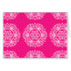 Esta mandala blanca se sienta sobre un fondo rosa brillante. El color es luminoso y alegre. Parte de la colección Rosenn Mandala.