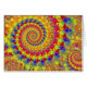 Tarjeta de felicitación con un modelo psicodélico amarillo, rojo, azul y rosado brillante loco del fractal.