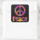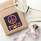 Un cartel de paz hecho con mi fractal "Color Me Bright" y la palabra "Paz" debajo. Los colores son verde limón, amarillo, naranja, rosa, morado, rojo y azul acuático. Los signos y las letras de la paz tienen un contorno rosado. Se puede personalizar el color de fondo.