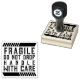 Sello de caucho personalizado con "frágil, no suelte, manipule con cuidado" en tipografía serif angustiada. Disponible en varios tamaños, con almohadillas de tinta adicionales disponibles en muchos colores.