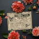 Prepárese para una espeluznante fiesta de Halloween con esta invitación editable que incluye ilustraciones anatómicos de cráneo y un formato de estilo vintage que recuerda a las antiguas etiquetas de veneno. Utilice las opciones "personalizar it" para añadir texto a la parte posterior y cambiar el color de la parte delantera de la invitación para obtener un aspecto más personalizado.
