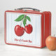 Pintura gráfica original de cerezas rojas jugosas y frescas sobre un fondo de rayas azules. Es genial con la cocina retro, vintage, rockabilly, de los años 40, 50, casa de campo, temas modernos de medio siglo. Huella divertida para cocina, dormitorio, artículos de baño o ropa linda. Todos los diseños de Artellus son obras de arte originales creadas y protegidas por los derechos de autor de Artellus y contienen una firma oculta. No copiar.