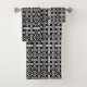 Toalla ambientada con azulejos de mosaico Art Déco chino Fretwork en blanco y negro clásico