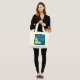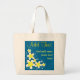 Flores Frangipani © Sunny Mars Designs. Bolsa de tetas florida grande o jumbo, fina, imprimida por personalizados y asequible, con un diseño de flores de Plumeria Frangipani amarillo y blanco sobre un fondo azul personalizable. Personalízalo agregándole un nombre u otro texto o, alternativamente, puede borrar el texto.
