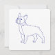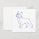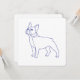 Klassisches Design in Blau-Weiß. Blaue Linienzeichnung einer französischen Bulldoggeauf weißem Untergrund.