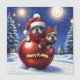 Kleine französische Bulldoggen im Schnee mit toller großer Weihnachtskugel. Die niedlichen Hunde wünschen Frohe Weihnachten und haben viele schöne Geschenke geschmückt mit tollen Schleifen dabei. Lustige , romantische Illustration mit Sternen und Mondschein zum Feiertag.