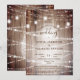¿Planeando una boda en un destino de granja rústica? Invite a sus invitados con esta hermosa Invitación con ilustración de frasco de luz con luces de hadas brillantes y mariposa monarca en fondo de madera vieja