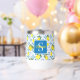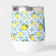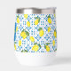 This wine tumbler features a unique Mediterranean-style pattern of French country tiles and lemons. It is easily personalizable with your name and monogram.