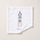 Elevate your daily routine with the refreshing essence of nature, as sprigs of herbal lavender delicately grace the bath towel on a lilac background. Embellish the hand towel with a monogram, which has a charming mason jar adorned with a ribbon and filled with the stalks of lavender.
