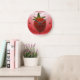 Para la cocina. Una grandiosa y despiadada fresa roja dulce. Presentado sobre un fondo de diseño de suaves colores de tarta de fresa. TShirtStrawberry, BGWarpRed, Clock7a