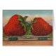 Tren de fresa gigante antiguo - Este ilustracion de fresa se basa en una postal de 1911 que muestra dos fresas gigantes que se envían a través del país en un tren. ¡Las fresas son más grandes que una casa! Estas son fresas gigantes, destinadas a gente gigante que vive en algún lugar en los extremos del imperio del rey de las fresas. Las fresas son cada una del tamaño de una casa, bayas rojas brillantes, y están sentadas en un lecho plano de tren, bajando por las vías del ferrocarril.