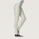Front and back views of leggings featuring a colorful plaid pattern with orange, blue, and white tones. Paired with black sneakers on a neutral background.