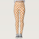 Front and back views of leggings with an orange and white checkered pattern. Styled with casual black sneakers on a neutral background.