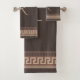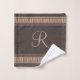 Diseño del ornamento de la frontera de la llave del Griego elegante, clásico del meandro con el monograma y decoración geométrica de las rayas en fondo del marrón oscuro. Gran idea para un regalo para los cumpleaños, navidad o apenas sorprender su amado. Es fácil personalizarla y cambiar el color de fondo para añadir el diverso al diseño con su opción.
