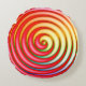 Fruity Twirl es un diseño digital de arte gráfico. Los colores vivos, perfectos para los niños, se mezclan con un trenzado circular. El patrón está a ambos lados de la almohada redonda. Los colores utilizados en el diseño son: rosa-rojo, amarillo, verde, azul y violeta.