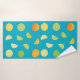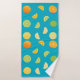 Este juego de toallas de baño incluye cal, limones y naranjas sobre un fondo azul verde azulado.