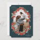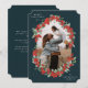 Bayas rojas pintadas a mano y tallos de eucalipto dispuestos en un marco botánico para tu foto. Todo el texto es totalmente editable para que puedas cambiar fácilmente el mensaje y el estilo, color, tamaño y ubicación. La parte posterior de la tarjeta tiene texto de plantilla para un mensaje más largo/resumen anual, pero elimínalo antes de pedir si prefieres un dorso en blanco - o sube una foto en su lugar. El diseño está disponible en otros colores y en diseños similares en mi tienda.