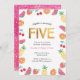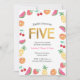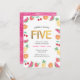 ¡Que tengas una fiesta tropical de 5 años para tu pequeña! Esta adorable invitación de cumpleaños color rosa fucsia incluye fruta acuática, piñas, sandías, naranjas, cerezas y fresas. Todos los detalles incluidos (excepto la edad) son personalizables. Otras edades también disponibles en esta colección, ver a continuación...