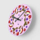 Frutas y reloj de pared redondo de las hojas de Kristie Hubler, con las manzanas, melocotones, bayas tales como frambuesas azules, arándanos, frambuesas de oro, grosellas espinosas, con las hojas undulating