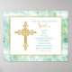 Esta huella de arte cristiano está diseñada con un diseño fronterizo exterior de acuarelas verdes y azules, recortada en tinta dorada para enmarcar en el dorado ornamental Cruz que está impresa en el lado izquierdo, con el versículo de la Biblia NKJV de los galátianos 5:22-23 que dice: "Pero el fruto del Espíritu es amor, alegría, paz, sufrimiento, amabilidad, fé y yo. control" en ella.