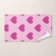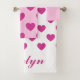 Toallas de baño con patrón cardíaco en paleta de color rosa. Este conjunto es sólo para ti si te gusta el color estético y rosa de y2k además puedes personalizar con tu hermoso nombre en letra manuscrita y elegante. Trae buenos albornoces a tu casa con este bonito juego de toallas.