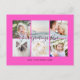 Tarjetas Postales de Fucsia Rosa Personalizadas con 6 fotos familiares Saludos Universales con un collage de fotos elegante con 6 imágenes personalizadas, su mensaje de saludo en una fuente elegante manuscrita, su nombre, fecha, año, mensaje en la parte posterior en una fuente moderna y simple sans serif.