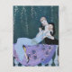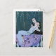 Fuegos artificiales en la postal Art Déco de París. Un ilustracion de arte deco de Georges Barbier. Los fuegos artificiales en París muestran una escena romántica que representa a una mujer con un vestido azul inclinada cariñosamente en los brazos de un joven en un esmoquin. La mujer levanta un rosa a su mejilla mientras los fuegos artificiales florecen sobre ellos. Un lindo regalo para los amantes del arte deco, Georges Barbier, y las huellas de fuegos artificiales de época.