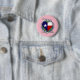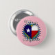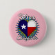 Este diseño del cuidador de Tejas está en un botón redondo con un fondo rosado y una fuente blanca.
