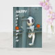 De este mundo tarjeta de Halloween con un niño espacial, calabazas y arañas.