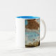 11 onzas dos entonan el azul en la taza de cerámica blanca que ofrece la cubierta de Josh "fuera del azul" y de una cita del libro.