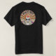 Camiseta divertida con estampado vívido (frontal y posterior) con un alien dando un signo de paz que está usando una corona de flores, parado frente a la luna, raya detrás de él y las palabras "¡Fuera la paz!" encima de él, y los satélites debajo. Diversión y genialidad para cualquiera que ame todas las cosas ajenas y el espacio exterior.