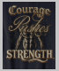 El diseño presenta el texto en negrita "Valor de fuerza" en un tipo de letra regular y serif. Las palabras se representan en una rica paleta de colores profundos y reales, creando una estética majestuosa y poderosa. El diseño se centra en un fondo azul claro y sólido, lo que aporta un lienzo limpio y moderno para el mensaje.