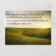 Postcard con una foto de un hermoso paisaje verde con brillantes rayos de sol llegando a las colinas. La Deuteronomía de versículo de la Biblia 31:6 está impresa en la parte superior, "Sé fuerte y valiente. No temáis ni os aterréis por causa de ellos, porque Jehovah vuestro Dios os acompaña; él nunca os abandonará ni os abandonará.