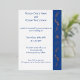 Trae un toque de diversión geeky a tu evento con esta invitación matrimonial con un rico borde azul zafiro en el lado derecho, decorado con un patrón de tubos de prueba, hebras de ADN, panaderos, modelos planetarios del átomo y moléculas de cafeína impresas en Relieve metalizado real. El lado izquierdo de la tarjeta tiene mucho espacio para todos los detalles de tu evento de temática científica con algún texto de ejemplo en el lugar que se puede personalizar para que se ajuste a tus necesidades. Un gran modelo atómico de zafiro termina las cosas en la parte trasera para crear una bonita nota final. Esta invitación coincidirá con cualquier otro producto de Fuerzas atractivas en azul para que pueda realizar fácilmente su evento tan coordinado como desee.
