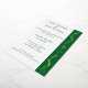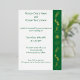 Trae un toque de diversión geeky a tu evento con esta invitación matrimonial con un rico borde verde esmeralda en el lado derecho, decorado con un patrón de tubos de ensayo, hebras de ADN, panaderos, modelos planetarios del átomo y moléculas de cafeína impresas en Relieve metalizado real. El lado izquierdo de la tarjeta tiene mucho espacio para todos los detalles de tu evento de temática científica con algún texto de ejemplo en el lugar que se puede personalizar para que se ajuste a tus necesidades. Un gran modelo atómico esmeralda termina las cosas en la parte trasera para crear una bonita nota final. Esta invitación coincidirá con cualquier otro producto de Fuerzas atractivas en verde para que pueda realizar fácilmente su evento tan coordinado como desee.