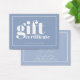 NewParkLane - Un simple pero elegante Certificado de Regalo, que incluye 'Certificado de Regalo' en una divertida tipografía blanca y audaz, contra un fondo azul grisáceo. La tarjeta tiene dos tonalidades, por lo que el dorso tiene un tono de color ligeramente más ligero. Puede utilizar cualquier color personalizado como fondo. Un diseño editable perfecto para un salón de belleza, spa, esteticista, peluquería o maquillador, pero también para el propietario de una tienda de regalos, f.i. Fácil de personalizar en Zazzle para un diseño personalizado. Todos los estilos, colores y tamaños de texto se pueden modificar para adaptarlos a sus necesidades. Mira esta colección para ver los elementos coincidentes.