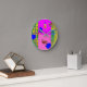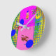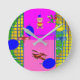 Reloj de pared con notas verdes geométricas de oro en bloques rosados brillantes divertidos