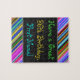This fun, colorful and whimsical birthday themed puzzle design features a warm birthday wish like "Have a Great 86th Birthday, First-Name!". The name can be customized. The top and bottom feature vibrant, multicolored stripes. A puzzle like this could be a fun way to deliver birthday wishes to somebody who is celebrating their eighty sixth birthday. [~Z0000268]