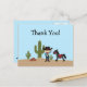 La carta de agradecimiento de este chico tiene un tema occidental de vaqueros. Hay un vaquero con un gorra, botas y una estrella del sheriff parado al lado de su caballo. Hay cactus en el fondo. Puede personalizar fácilmente su mensaje de agradecimiento en la parte posterior. Derechos de autor © Tainted Sweets com
