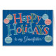 Una divertida tarjeta de vacaciones Happy para un abuelo, basada en texto, con ornamentos y letras, llena de chevrones rojos, azules y verdes y puntos de polka, se dibuja en blanco sobre un fondo azul brillante. También hay una tarjeta delantera personalizado con este diseño en funda que no puede encontrar una tarjeta para el destinatario específico que está buscando.