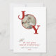 Joyous Merry Christmas in Red con tu impresionante foto insertada en la palabra Joy. ¡Inserta tus datos personales y de eso se va a todas tus personas favoritas esta temporada navideña de Navidades!