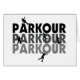 Diseño libre moderno del funcionamiento de Parkour en negro, gris oscuro, y gris claro con la gente silueteada que corre, saltando, colgando, y moviendo de un tirón.