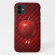 Ilustracion de manzana jugosa sobre fondo con estampado rojo con iniciales de personalizable o nombre.