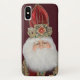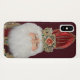 funda del iPhone X con una imagen de St. Nick con su pieza de cabeza y su traje con joyas. Tiene una larga barba blanca y el fondo es arándano oscuro.