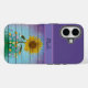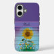 Un girasol amarillo bonito sobre un diseño pintado de imitación azul y púrpura. Cuadro de texto agregado si desea monograma.
