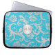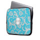 Este brillante funda para portátil de damasco floral azul y plateado tiene un medallón de plata FAUX con un cuadro de texto para que añada su propio nombre, monograma u otro texto. Si necesita ayuda para personalizar, envíe un correo electrónico a niteowlstudio@gmail.com.