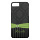 Este moderno damasco negro y gris con rayas iPhone 7 funda tiene una cinta imprimida de color verde limón y una hebilla de joyas de diamante IMPRESIONADA. se puede personalizar con tu logotipo, nombre, iniciales u otro texto. Si necesita ayuda, envíe un correo electrónico a niteowlstudio@gmail.com.