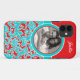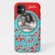 Este moderno, personalizado, azul turquesa, rojo y blanco, Funda-Mate de diseño de damasco floral Barely There™ iPhone 5 Funda tiene puntos para que usted agregue su nombre, iniciales, monograma u otro texto, y una foto digital. Si necesita ayuda para personalizar esto, envíe un correo electrónico a niteowlstudio@gmail.com.