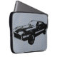 ¡Una bolsa electrónica para los amantes de los autos! Estilo de silueta negra gráfico de un coche músculo americano clásico con fondo azul