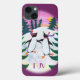 Un divertido Funda-funda Mate Xtreme con la opción de personalizar para tu smartphone iPhone 5c, con dos lindos pingüinos divertidos, patinando sobre hielo, en un paisaje nevado con abetos y un sol poniente; de un collage de papel pintado a mano de Judy Adamson.